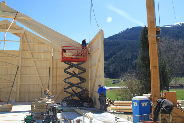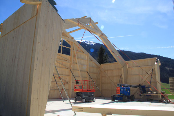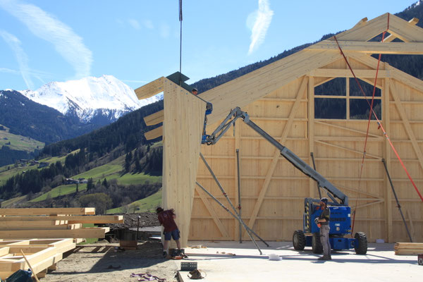 Fertigstellung dieser beeindruckenden Ingenieurholzbau-Konstruktion. Gerade rechtzeitig vor der Heumahd!