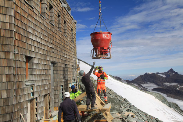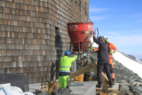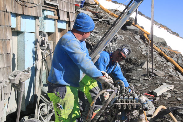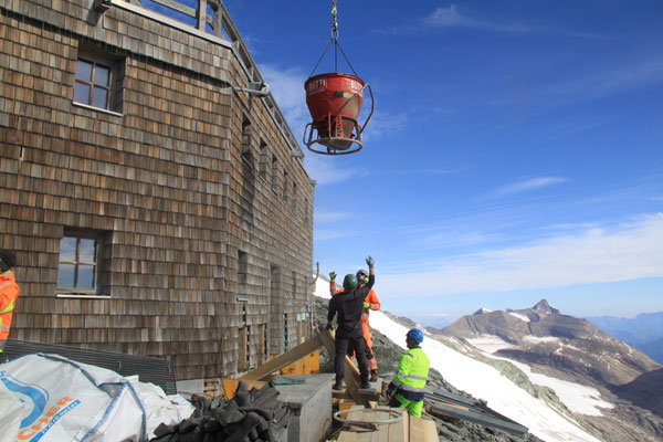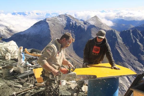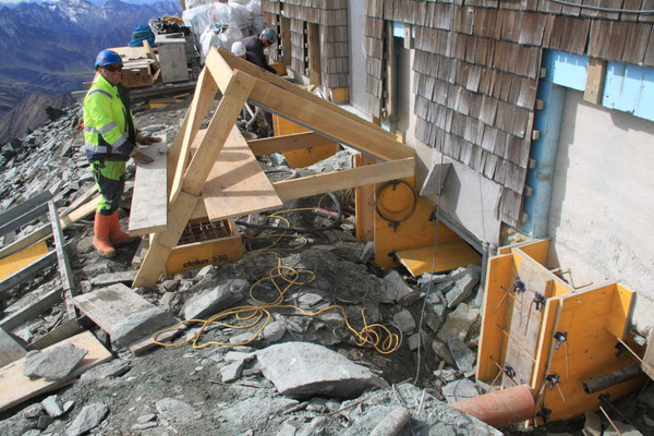 Für die Erzherzog-Johann-Hütte (3.460 m) bzw. ihre neue Materialseilbahn ist noch eine kleine Teilleistung zu erbringen: die Ladeplattform bei der Bergstation. Da die Fundamente zum Teil auf Permafrost stehen (welcher auch in dieser Höhe abzuschmelzen beginnt), ist die Holzkonstruktion über eine Ankerkonstruktion so gebaut, dass sie bis zu 1 m nachjustierbar ist.