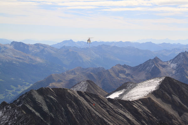 Bei jedem neuen Anflug mit dem Betonkübel bieten die Wolkenformationen eine andere, prächtige Kulisse der atemberaubenden Bergwelt des Großglockners.