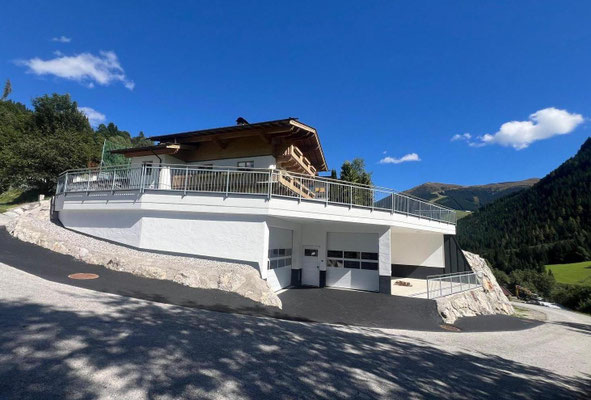 In Bruck haben wir bei einem alten Einfamilienhaus einen großzügigen und sehr feingliedrig gestalteten Windfang errichtet. Zudem haben wir die alte Fassade saniert, d.h. unten neu verputzt und oben neu verschalt.