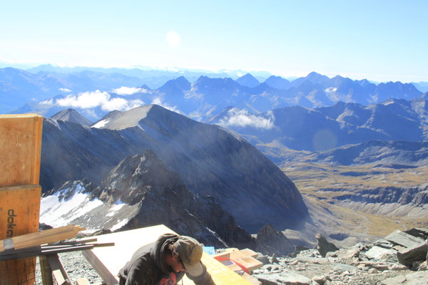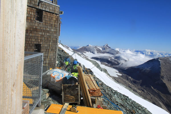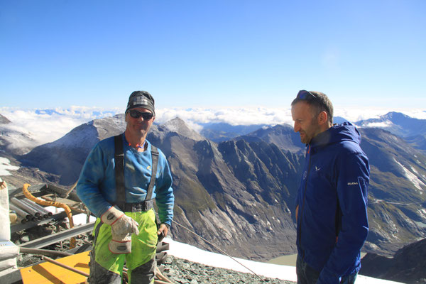 Bei solchen Wetterverhältnissen, wer wollte nicht auch da oben sein...? Trotzdem, die Arbeit auf dieser Höhe ist hart, und der nächste Wetterumschwung steht schon wieder vor der Tür...